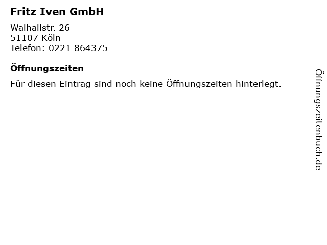| Öffnungszeiten Fritz Iven GmbH in Köln anzeigen | |
