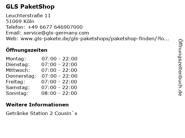 Öffnungszeiten GLS PaketShop in Köln anzeigen