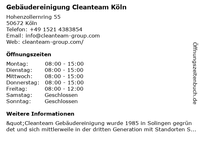 Branchen & Suchbegriffe zu Gebäudereinigung Cleanteam Köln:büro- und arbeitsplatzreinigung, cleanteam, fitnessstudio reinigung, gastronomiereinigung, gebäudereinigung, gebäudereinigung in meiner stadt, grundreinigung, hotelreinigung, industriereinigung, kindergartenreinigung, praxisreinigung, schimmelbeseitigung, tatortreinigung, treppenreinigung, unterhaltsreinigung |