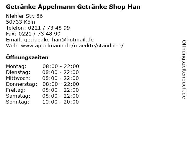 Branchen & Suchbegriffe zu Getränke Appelmann Getränke Shop Han:appelmann, bier, getränke, getränkehandel, han, shop, säfte, wein |