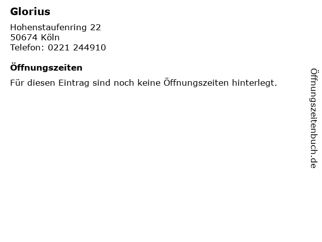 | Öffnungszeiten Glorius in Köln anzeigen | |