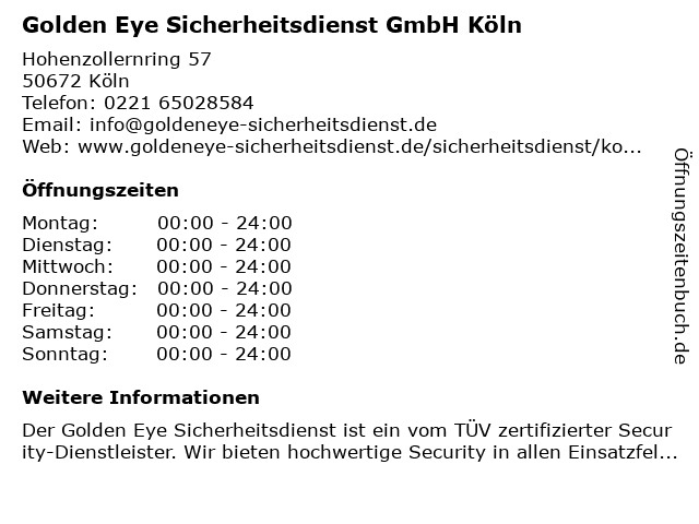 Branchen & Suchbegriffe zu Golden Eye Sicherheitsdienst GmbH Köln:eye, golden, sicherheitsdienst |