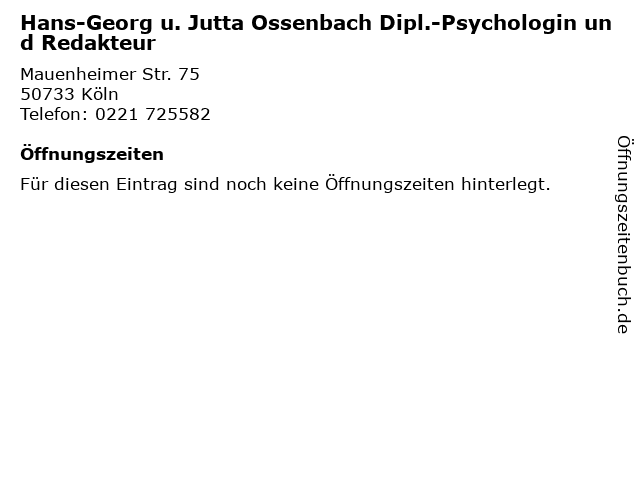 | Hans-Georg u. Jutta Ossenbach Dipl.-Psychologin und Redakteur anrufen | |