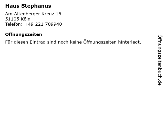 | Öffnungszeiten Haus Stephanus in Köln anzeigen | |