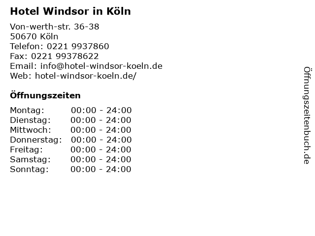 | Öffnungszeiten Hotel Windsor in Köln in Köln anzeigen | |