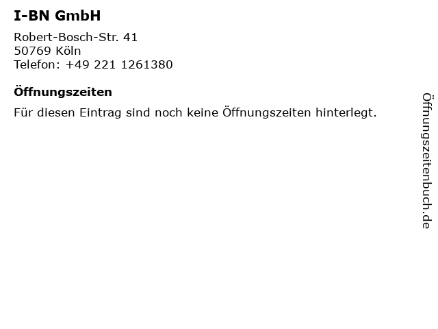 | Öffnungszeiten I-BN GmbH in Köln anzeigen | |