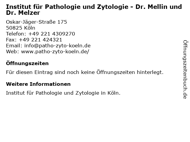| Institut für Pathologie und Zytologie - Dr. Mellin und Dr. Melzer anrufen | |