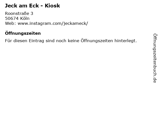 | Öffnungszeiten Jeck am Eck - Kiosk in Köln anzeigen | |