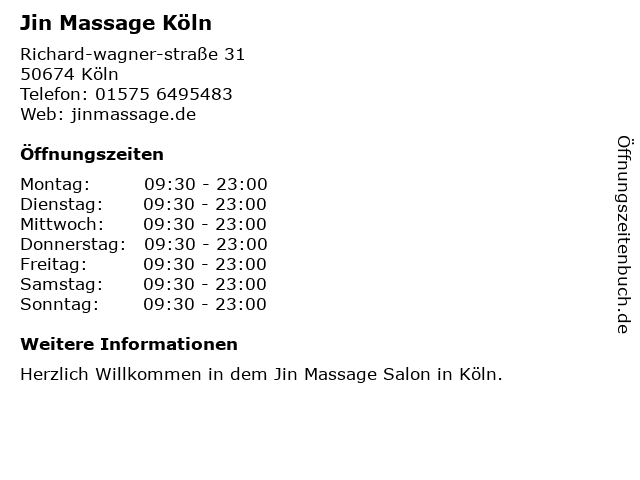 | Öffnungszeiten Jin Massage Köln in Köln anzeigen | |