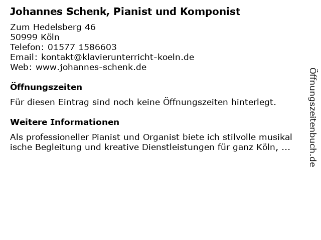 | Johannes Schenk, Pianist und Komponist anrufen | |