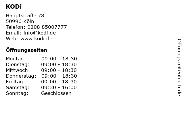 | Öffnungszeiten KODi in Köln anzeigen | |