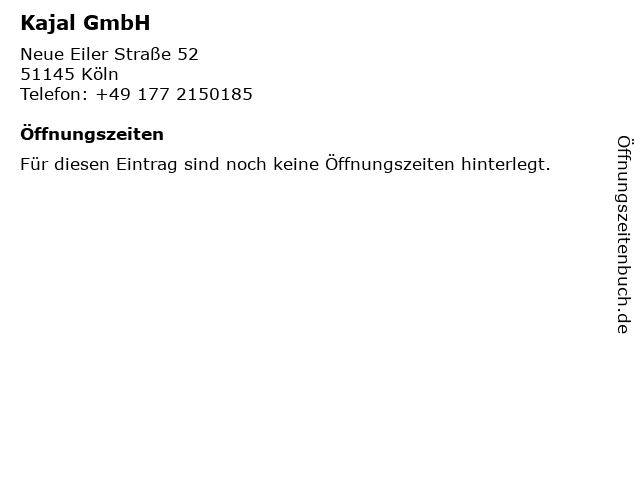 Öffnungszeiten Kajal GmbH in Köln anzeigen | |