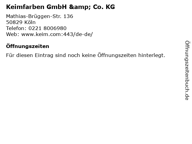 | Adresse Keimfarben GmbH & Co. KG in Köln anzeigen |