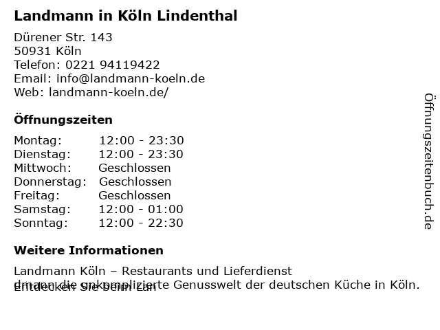 | Öffnungszeiten Landmann in Köln Lindenthal in Köln anzeigen | |