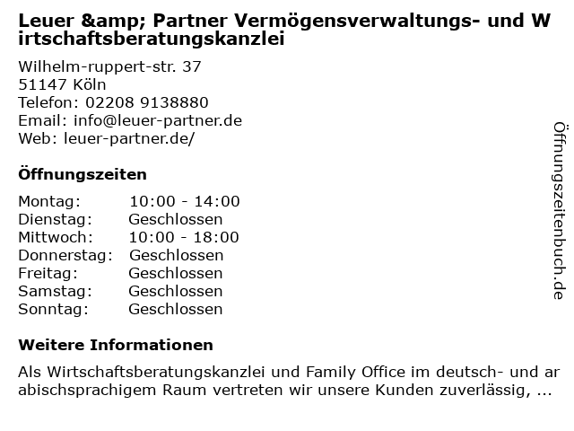 Branchen & Suchbegriffe zu Leuer & Partner Vermögensverwaltungs- und Wirtschaftsberatungskanzlei:leuer, partner, vermögensverwaltungs, wirtschaftsberatungskanzlei |