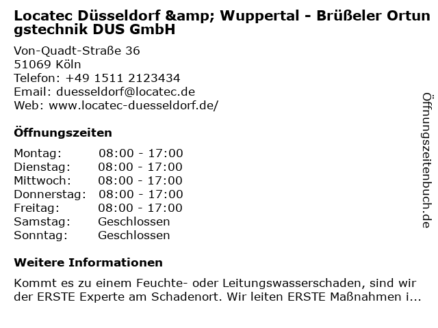 Branchen & Suchbegriffe zu Locatec Düsseldorf & Wuppertal - Brüßeler Ortungstechnik DUS GmbH:brüßeler, dus, feuchte wand, feuchteschaden, leck, leckage, leckortung, leckortung am flachdach, leckortung im außenbereich, leckortung in gebäuden, leitungswasserschaden, locatec, nasse wand, ortungstechnik, rohrbruch, rohrbruch notdienst, rohrbruchortung, wasserschaden, wasserschaden melden |