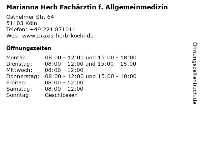 Branchen & Suchbegriffe zu Marianna Herb Fachärztin f. Allgemeinmedizin:allgemeinarzt, allgemeinmedizin, f., fachärztin, herb, marianna |