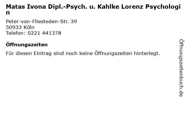 | Matas Ivona Dipl.-Psych. u. Kahlke Lorenz Psychologin anrufen | |