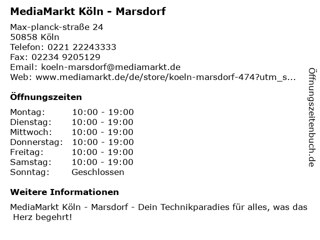 Öffnungszeiten MediaMarkt Köln - Marsdorf in Köln anzeigen | |
