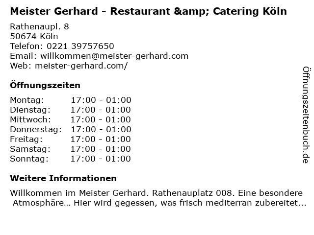 Öffnungszeiten Meister Gerhard - Restaurant & Catering Köln