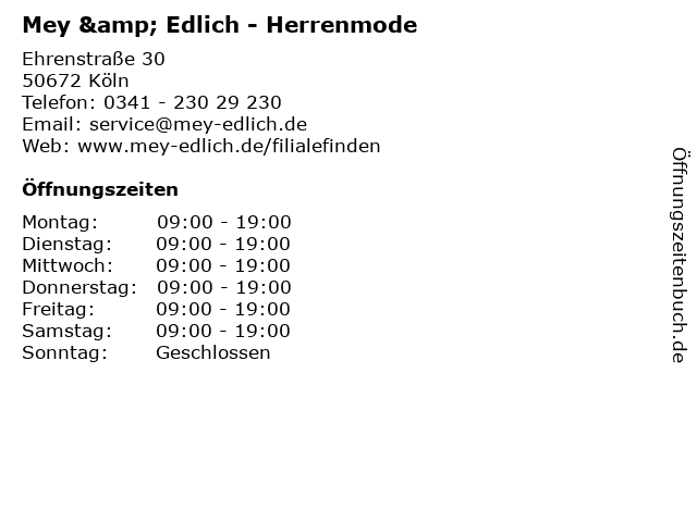 | Öffnungszeiten Mey & Edlich - Herrenmode in Köln anzeigen | |
