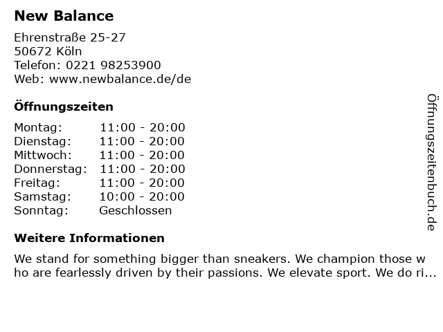 Öffnungszeiten New Balance in Köln anzeigen | |