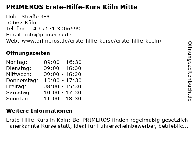 Branchen & Suchbegriffe zu PRIMEROS Erste-Hilfe-Kurs Köln Mitte:erste, erste hilfe am unfallort, erste hilfe kurs, erste-hilfe, erste-hilfe-kurs, führerschein sehtest, herz-lungen-wiederbelebung, herzinfarkt, hilfe, kurs, mitte, primeros, schlaganfall, stabile seitenlage, verbandmaterial, weiterbildung |