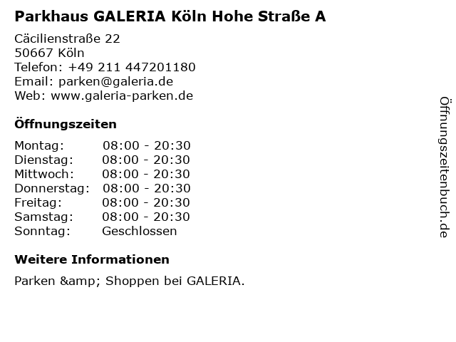 Branchen & Suchbegriffe zu Parkhaus GALERIA Köln Hohe Straße A:galeria, hohe, parken, parkhaus, straße |