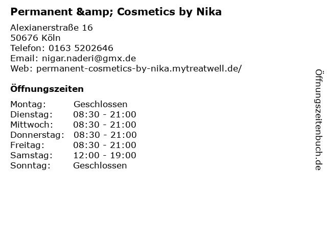 Öffnungszeiten Permanent & Cosmetics by Nika in Köln anzeigen | |