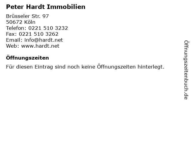 | Öffnungszeiten Peter Hardt Immobilien in Köln anzeigen | |