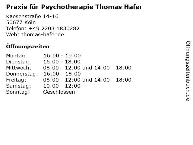 1 Antonia Torras - Paartherapie, Erziehungsberatung, Coaching (Entfernung: 0,24 km) Salierring 11, 50677 Köln 4 Paartherapie Köln | Beratung für Paare und Einzelpersonen | Nadine Pfeiffer (Entfernung: 0,62 km) Luxemburger Straße 8, 50674 Köln 6 David Gerhard Praxis für Paartherapie - Paarcoaching - Psychotherapie, Köln (Entfernung: 1,41 km) Brüsseler Str. 21, 50674 Köln |