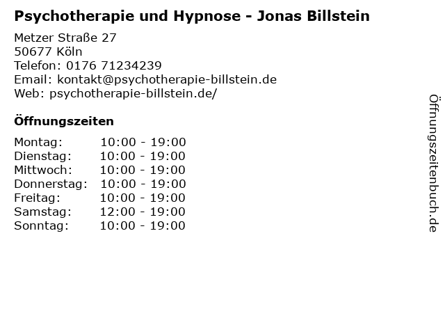Branchen & Suchbegriffe zu Psychotherapie und Hypnose - Jonas Billstein:billstein, hypnose, jonas, psychotherapie |