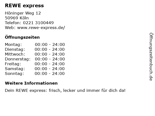 | Öffnungszeiten REWE express in Köln anzeigen | |
