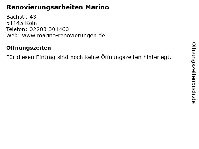 | Öffnungszeiten Renovierungsarbeiten Marino in Köln anzeigen | |
