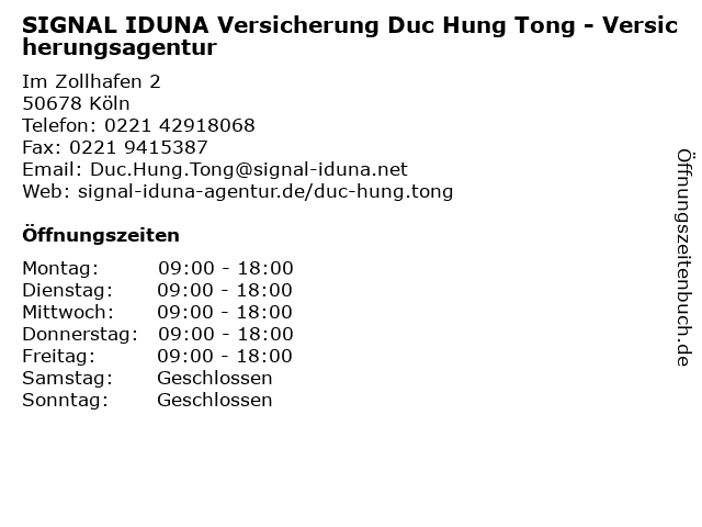 Branchen & Suchbegriffe zu SIGNAL IDUNA Versicherung Duc Hung Tong - Versicherungsagentur:duc, hung, iduna, signal, tong, versicherung, versicherungsagentur |