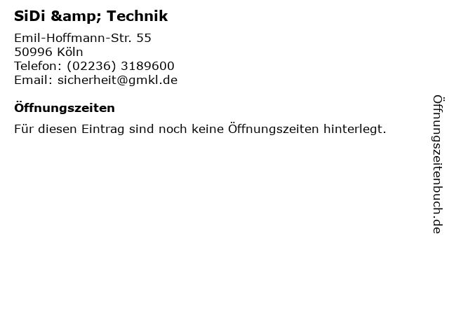 | Öffnungszeiten SiDi & Technik in Köln anzeigen | |