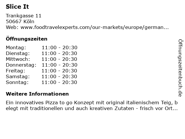 | Öffnungszeiten Slice It in Köln anzeigen | |