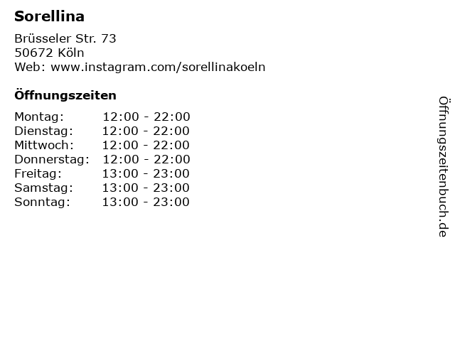 | Öffnungszeiten Sorellina in Köln anzeigen | |