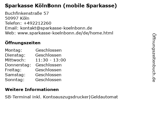 Öffnungszeiten Sparkasse KölnBonn (mobile Sparkasse)