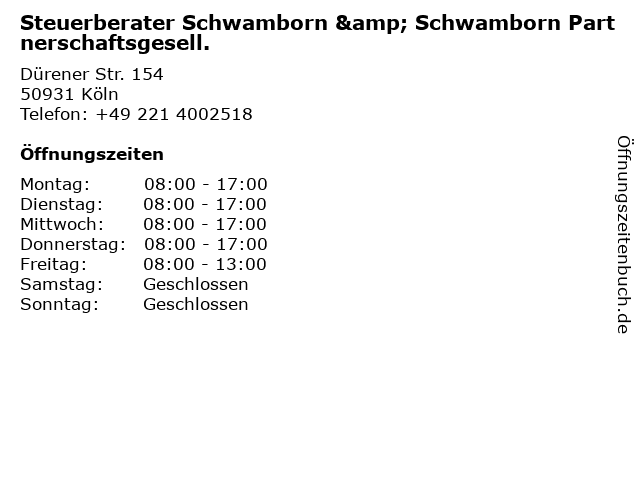 Branchen & Suchbegriffe zu Steuerberater Schwamborn & Schwamborn Partnerschaftsgesell.:partnerschaftsgesell., schwamborn, steuerberater |