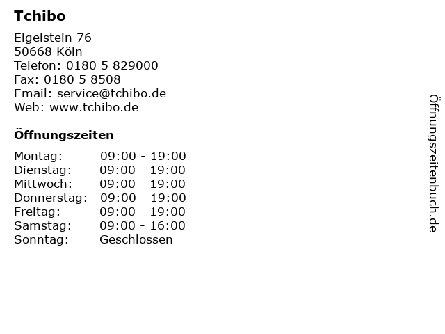 | Öffnungszeiten Tchibo in Köln anzeigen | |