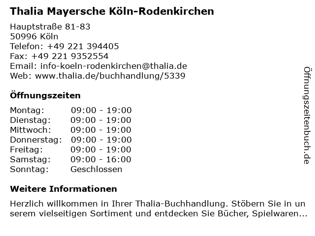 Branchen & Suchbegriffe zu Thalia Mayersche Köln-Rodenkirchen:bestseller, bookshop, buchhandlung köln, buchladen, bücher, ebooks, mayersche, rodenkirchen, spielwaren, thalia, thalia buchhandlung, thalia köln |