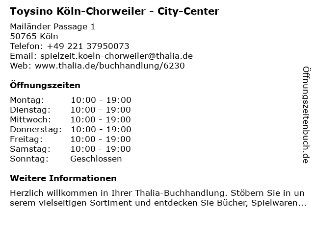 Branchen & Suchbegriffe zu Toysino Köln-Chorweiler - City-Center:bestseller, bookshop, buchhandlung köln, buchladen, bücher, center, chorweiler, city, ebooks, spielwaren, thalia buchhandlung, thalia köln, toysino |