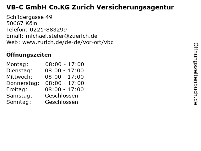 5 Zurich Versicherungen - Generalagentur Thorsten Dick Wolfgang Polle (Entfernung: 2,04 km) Pr.-Otto-Müller-Platz 7, 50670 Köln 6 VB-Anwaltskanzlei von Bodelschwingh & von Braunschweig (Entfernung: 2,80 km) Aachener Str. 321, 50931 Köln |