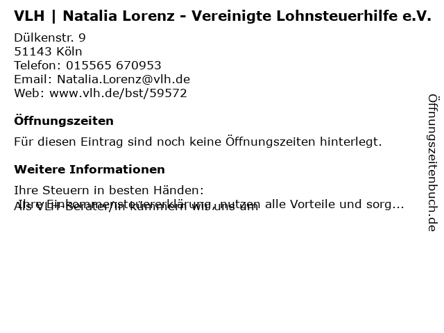 | VLH | Natalia Lorenz - Vereinigte Lohnsteuerhilfe e.V. anrufen | |