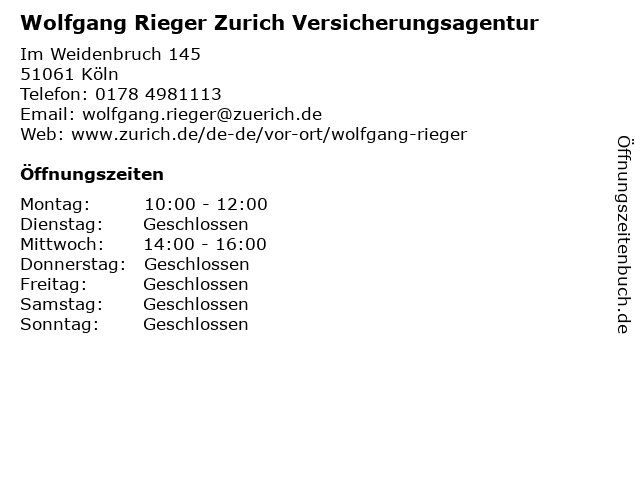 5 Michael Rieger Abschlepp-Pannendienste Transporte (Entfernung: 5,00 km) An der Johannisbrücke 12, 66113 Saarbrücken 6 Zurich Versicherungen - Generalagentur Hans Jakob Jung (Entfernung: 5,14 km) Frankfurter Str. 587, 51145 Köln |