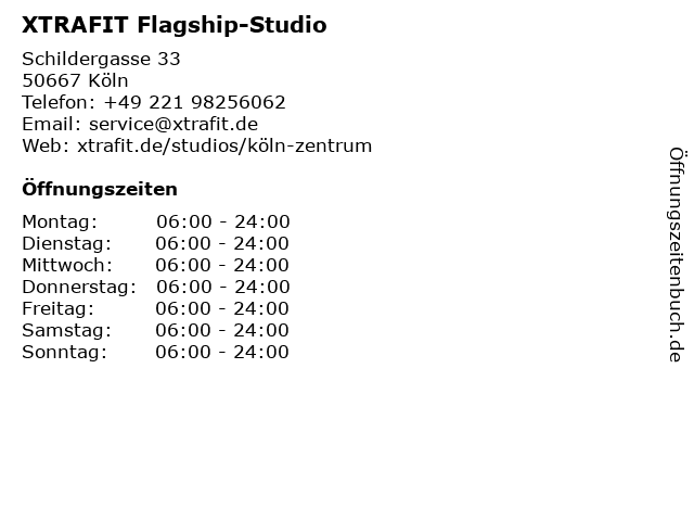 | Öffnungszeiten XTRAFIT Flagship-Studio in Köln anzeigen | |