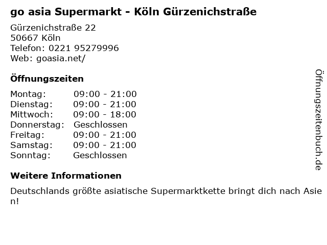 Branchen & Suchbegriffe zu go asia Supermarkt - Köln Gürzenichstraße:asia, go, gürzenichstraße, supermarkt, supermärkte |