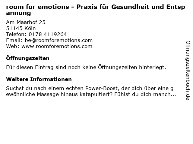 | room for emotions - Praxis für Gesundheit und Entspannung anrufen | |