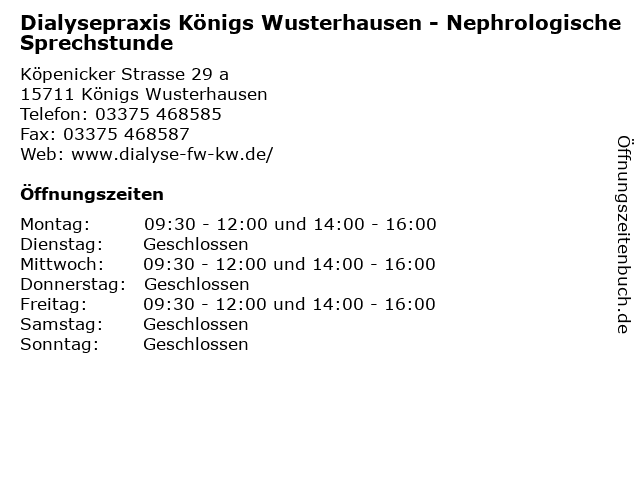 Branchen & Suchbegriffe zu Dialysepraxis Königs Wusterhausen - Nephrologische Sprechstunde:apherese, dialyse, dialysepraxis, königs, nephrologische, sprechstunde, wusterhausen |